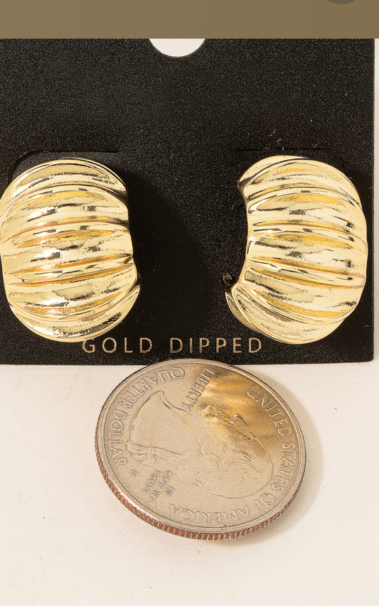 Gold Dipped Wide Ridged Hoop Earrings